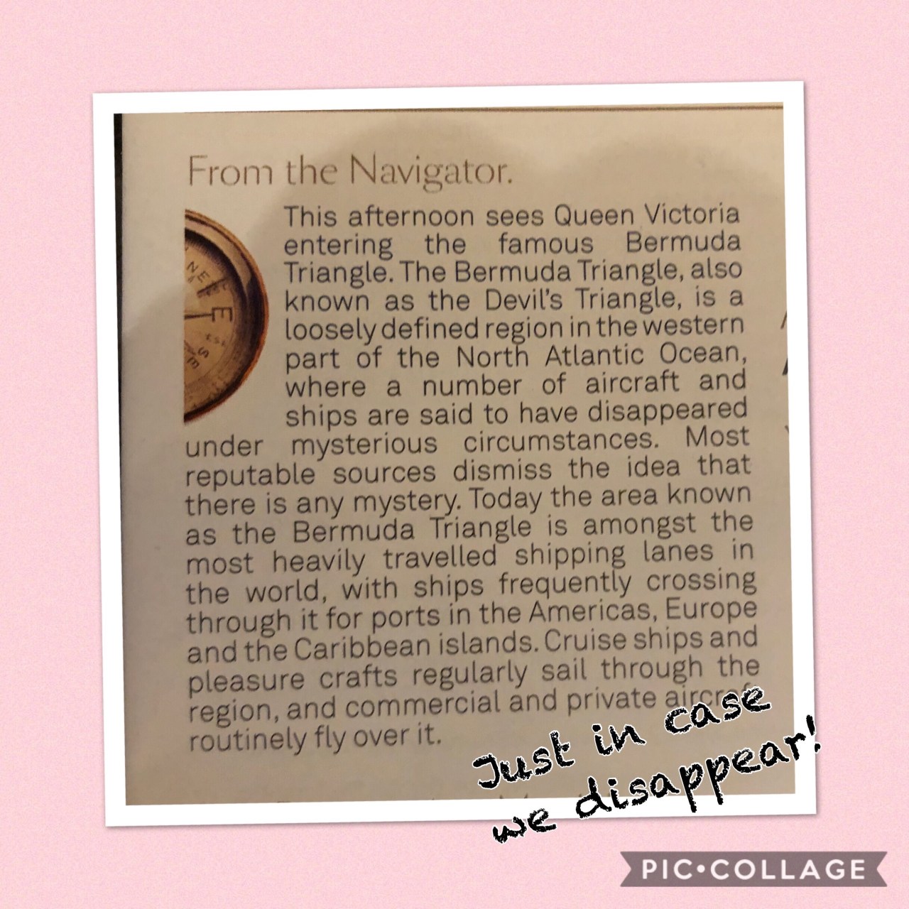 Had a wine tasting, Captain’s cocktail party, Burns Night Ball and crossing the equator ceremony. In the evenings a comedian, a singer and a mind reader.